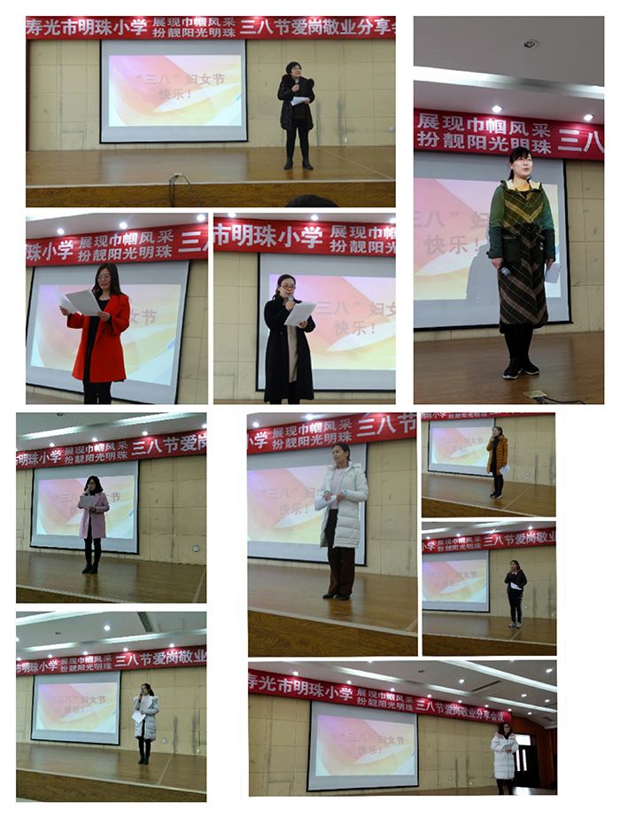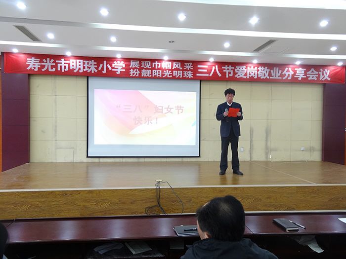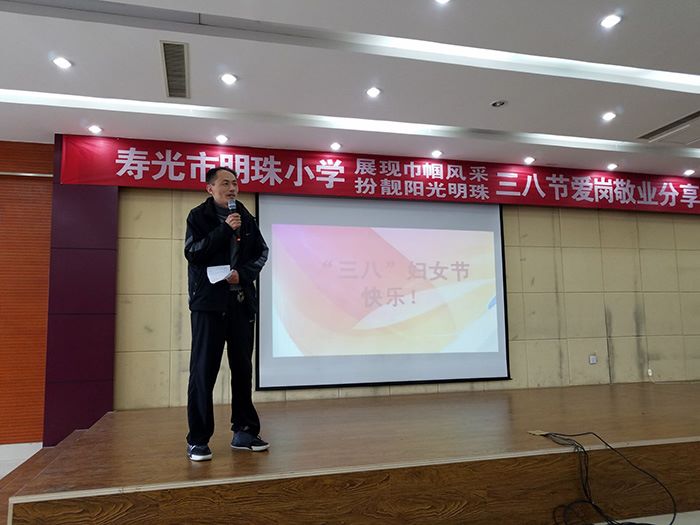 寿光市明珠小学党支部书记、校长郭建富同志致辞,他代表学校党支部祝福全体女教工节日快乐,对老师们新一年的工作提出了希望和建议。接下来10名女教职工代表分别发言,每位发言的教师就自己的工作和生活实际进行了经验分享,年长教师的经验、年轻教师的成长、青年教师的成熟,让在座的所有老师切实体会到女教工不仅仅是工作上不让须眉的有为女性,也是幸福家庭的建设者和成就者。最后李云国副校长就本次活动做了总结和点评。