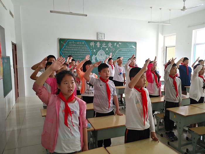 各中队在辅导员组织下观看了岳飞、戚继光、王二小等英雄的感人事迹,走近英雄、感受英雄的信仰、坚守与情怀;倡导队员们向爸爸妈妈、爷爷奶奶了解收集自己家族中的报国家书、老物件、报国故事等,在队会上择优分享,引导队员将崇尚英雄、精忠报国与个人经历、家庭传承有机结合起来。