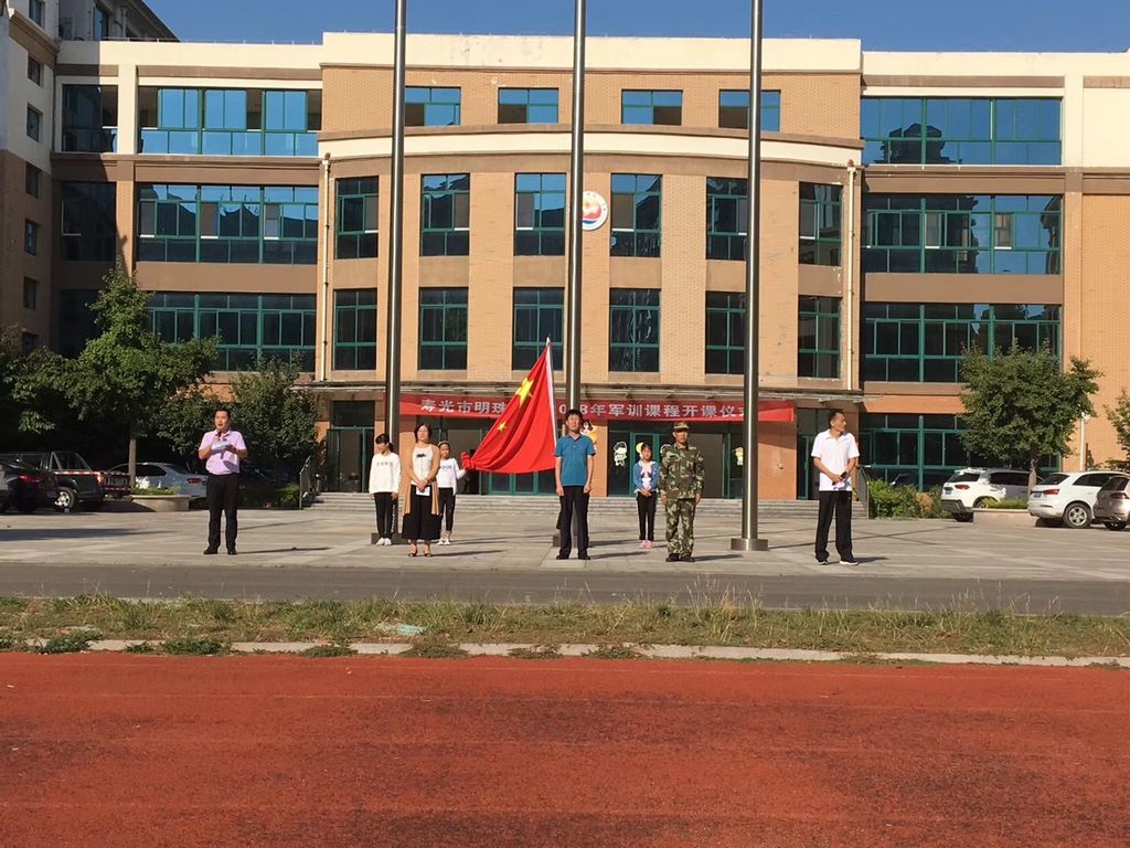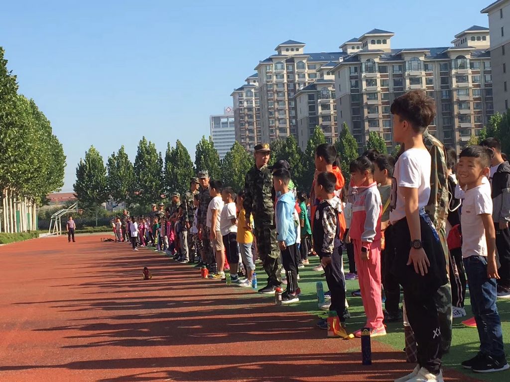 本次军训得到学校各位领导的高度重视,为了保证军训活动顺利进行,学生发展部制定了周密的军训方案。9月17日全校师生参加了军训课程开课仪式,军训正式开始。本次军训包括稍息、立正、跨立、停止间转法、行进停止、集体游戏、整理内务等内容。军训中,同学们意志坚强、步伐坚定,不怕苦不怕累,短暂而充实,辛苦而难忘。军训汇演中,学生们和教官们展示了几天来的军训成果,各班依次上场,队列整齐、动作规范、精神饱满、口号响亮,充分展示了明珠少年的优秀风采!郭校长首先向所有参与军训的老师表示衷心的感谢,向不怕疲劳、顽强拼搏、并收到良好效果的同学们表示热烈的祝贺;与此同时,郭校长也希 望同学们把军训期间养成的优良作风带到以后的学习生活中,为自己将来走向成功之路打下坚实的基础!