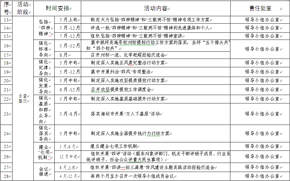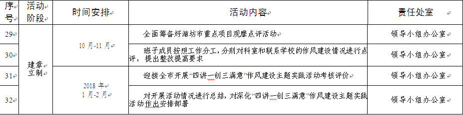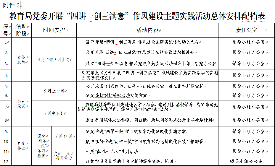 3、教育局党委开展“四讲一创三满意”作风建设主题实践总体安排配档表