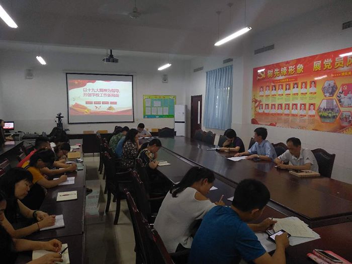 为加强党性教育,严格支部党内组织生活,提升支部党员的党性修养和政治素质,6月12日,明珠小学党支部书记郭建富同志为支部全体党员和中层干部,上了一堂题为“以十九大精神为指导,开创学校工作新局面”的主题党课。郭建富书记带领全体党员和中层干部再次深入学习、把握十九大的核心新亮点,全面领会十九大精髓。并强调一定要提高觉悟认识,学以致用,努力做好学校教学工作。做到政治上严格要求、工作上任劳任怨、同事间团结友爱、做事扎实不越位、勤奋学习强制素质、充分做好后勤保障。