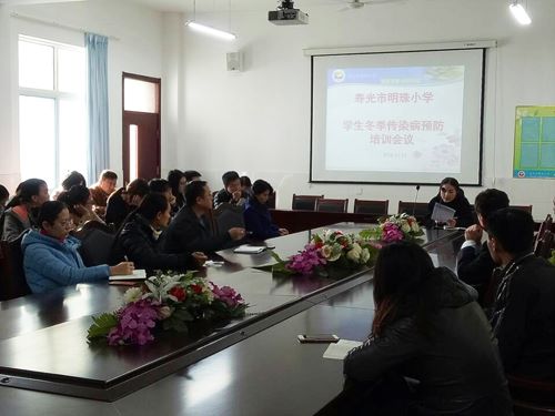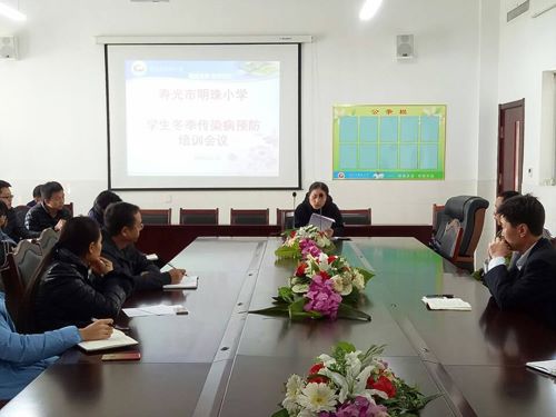 针对冬天学生们容易感冒,易发生流行性感冒的情况,市明珠小学于11月11日下午聘请市立医院儿科专家孟主任,为明珠小学的全体教师进行了冬季传染病预防培训会议。