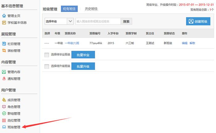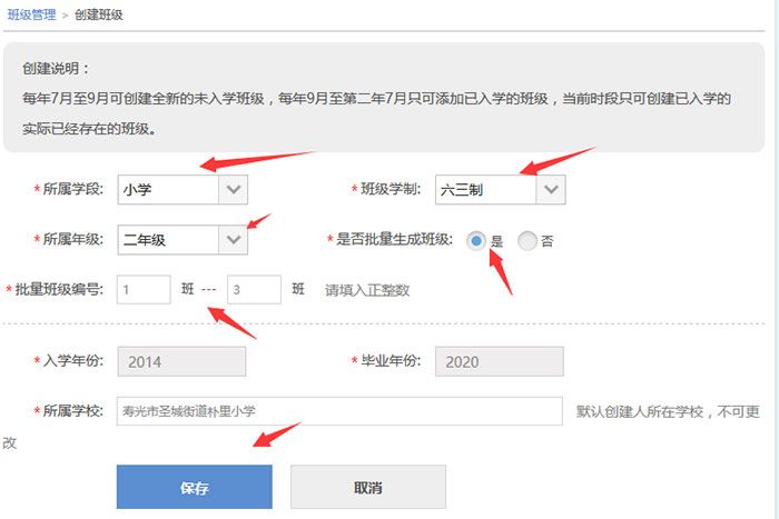 3、建立班级。左侧导航菜单 “班级管理”—右上角“创建班级”,批量建立班级,并记住这里有个“班级编号”。