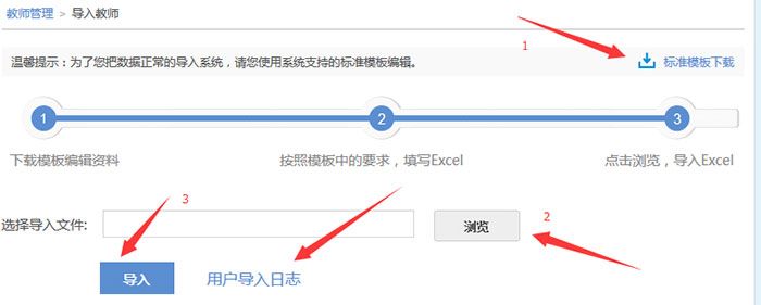 名即可;后面的为一组组的,如果某老师在多个班任教,请在表的右侧,复制多组,每三个为一组。如“授课班级的班级编码”从“班级管理”处查找;“主教科目”,可以从“在单个添加教师的时候,有个主教学科设置菜单”里查看;“是否班主任”,填“是”或“否”即可。导入情况,在最后查看“用户导入日志”即可。若有问题,咨询国家平台客服。