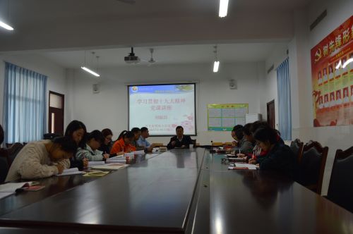 为深入贯彻落实党的十九大精神,进一步提升办学水平,11月16日,市明珠小学党支部召开组织生活会,市教育局副局长刘福昌为全体党员教师上了一堂生动精彩的党课,带领全体党员教师认真学习领悟了党的十九大精神。