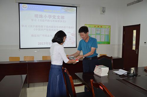 为了深入推进“两学一做”学习教育常态化制度化,促进全体党员教师提高思想政治素质、提升奋斗拼搏精神。近日,市明珠小学党支部向全体党员教师发放了《习近平的七年知青岁月》一书。此书作为一部青年成才的“励志书”,用真实的历史细节生动再现了总书记知青岁月的艰苦生活,让我们对习总书记的成长历程有了最直观的了解。