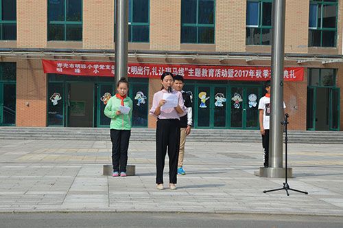 沐浴清晨,充满了新学期的希望;再起秋风,吹拂着跳动的心房。清爽的季节里,和谐的气氛中,9月11日,市明珠小学全体师生举行“文明出行,礼让斑马线”教育活动暨2017年秋季开学典礼。 此次活动正值我市创建文明城期间,呼吁全体师生要遵守交通规则,文明出行,为我市文明城创建贡献力量。最后,此次活动在大家热烈的掌声中圆满结束。