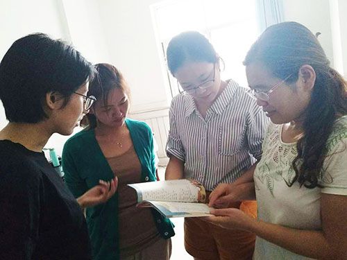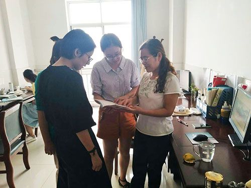 新学期伊始,三名新入职英语老师找到本校老教师,虚心地向她请教在英语教学方面遇到的问题,老教师耐心地为她们做了详细具体的解答,三位新老师表示受益匪浅。