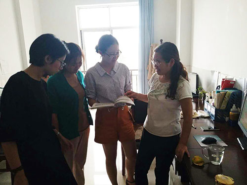 新学期伊始,三名新入职英语老师找到本校老教师,虚心地向她请教在英语教学方面遇到的问题,老教师耐心地为她们做了详细具体的解答,三位新老师表示受益匪浅。