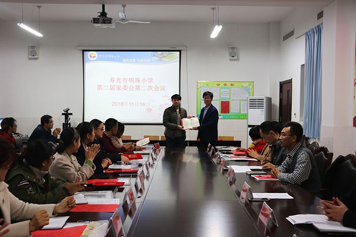 参加会议的有:校长郭建富、副校长李云国、学生发展部主任夏志强及全体家委会成员。本次会议旨在为家庭和学校之间架起一座沟通的桥梁,促进家庭与学校的合作。会议公布了新一届家委会组成人员名单,并由校长郭建富同志向新加入的委员颁发聘书。家委会主任委员丁波同志发表讲话,希望各位家委会成员能够尽职尽责,努力工作积极参与学校管理。
