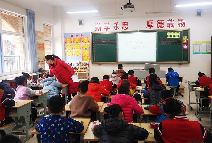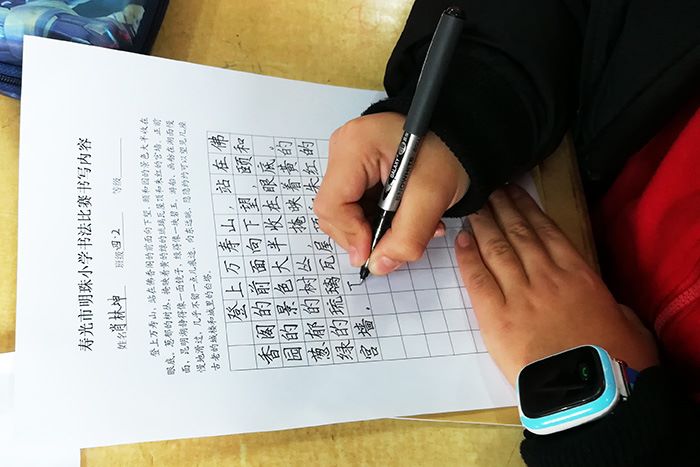 为弘扬中华民族书法文化传统,培养全体学生认真书写的良好习惯,展示“橙果果”写字软件进课堂的教育教学成果。寿光市明珠小学于1226日下午举行了第二届硬笔书法比赛。