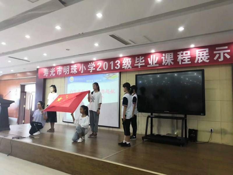 2019年7月5日上午,明珠小学举行了主题为“向国旗敬礼 为梦想起航”的2013级毕业课程展示活动。出席本次活动的有学校领导、六年级全体师生及家长代表。