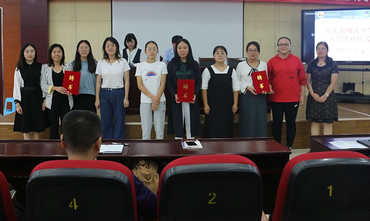仪式由张聪老师主持,李云国副校长宣读师徒结对名单,李华副校长为一对对师徒颁发了代表着责任和担当的协议书,并举行了结对仪式,正式确立师徒关系,开启了他们的“共同成长”之旅。随后,魏静老师代表师傅们作了发言,表示他们愿意为新教师的快速成长贡献自己的力量。青年教师吴菁的发言,则表达了他们渴望快速成长的决心和信心。最后,郭建富校长做了总结发言,阐明了指导教师应如何履行好自己的“传、帮、带”责任,并对青年教师的快速成长,提出了殷切的希望和具体的要求。