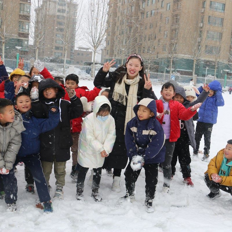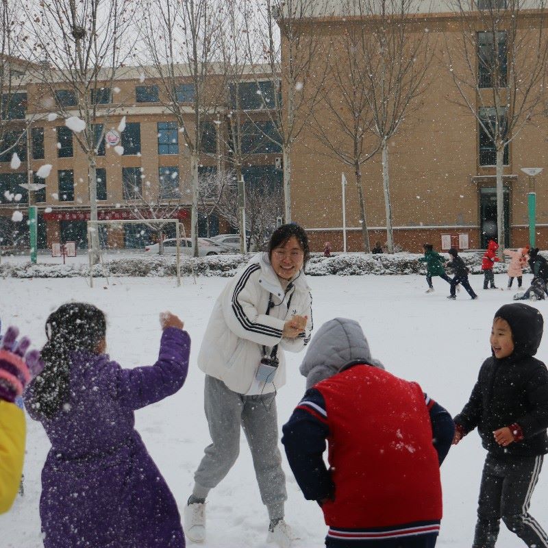 学生们兴高采烈、迫不及待地走进了“冰雪世界”,去感受触摸冰雪的乐趣。低年级同学在班主任的带领下各显神通,有的用铲子铲,有的用扫帚扫,还有的直接用手去捧,不一会儿,雪人的大身子就堆起来了。大孩子门捧起一堆雪,用双手捏了又捏,趁同伴不备,一下子将雪球砸向身上,别提有多高兴了,银白色的操场上充满了欢声笑语。